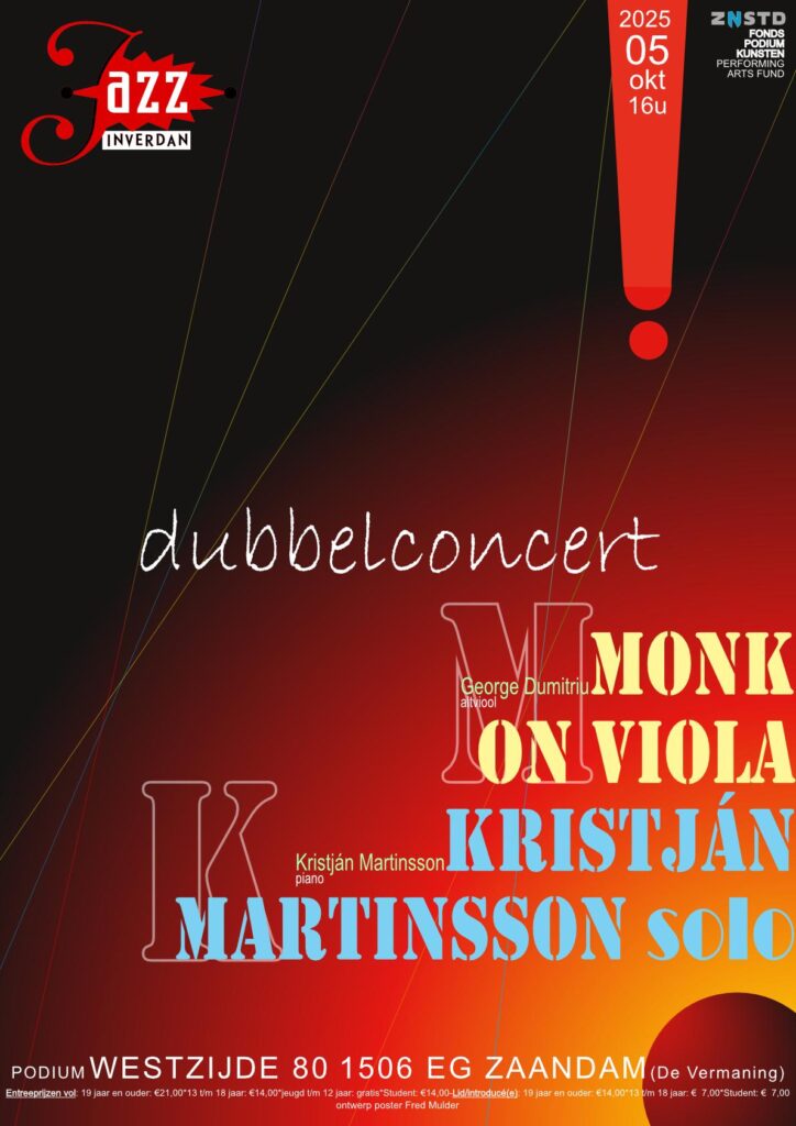 De andere solist die u deze middag hoort, is pianist Kristján Martinsson. De IJslander woont alweer enige tijd in Zaandam, en daarom nodigde Jazz Inverdan hem al eens uit voor de improvisatie-estafette ‘Zaans onderonsje’ op Bevrijdingsdag 2024. Als solist is hij beïnvloed door de Scandinavische jazz en geïmproviseerde muziek. We horen dus veel lyriek en atmosferische klanken, die soms aan Franse klassieke componisten uit het impressionisme doen denken, zoals Claude Debussy of Erik Satie. Maar bij Martinsson ligt er altijd wel een scherp randje op de loer, wanneer hij in het binnenwerk van de piano duikt, of er een paar woeste clusters tussendoor gooit. Avontuur verzekerd!